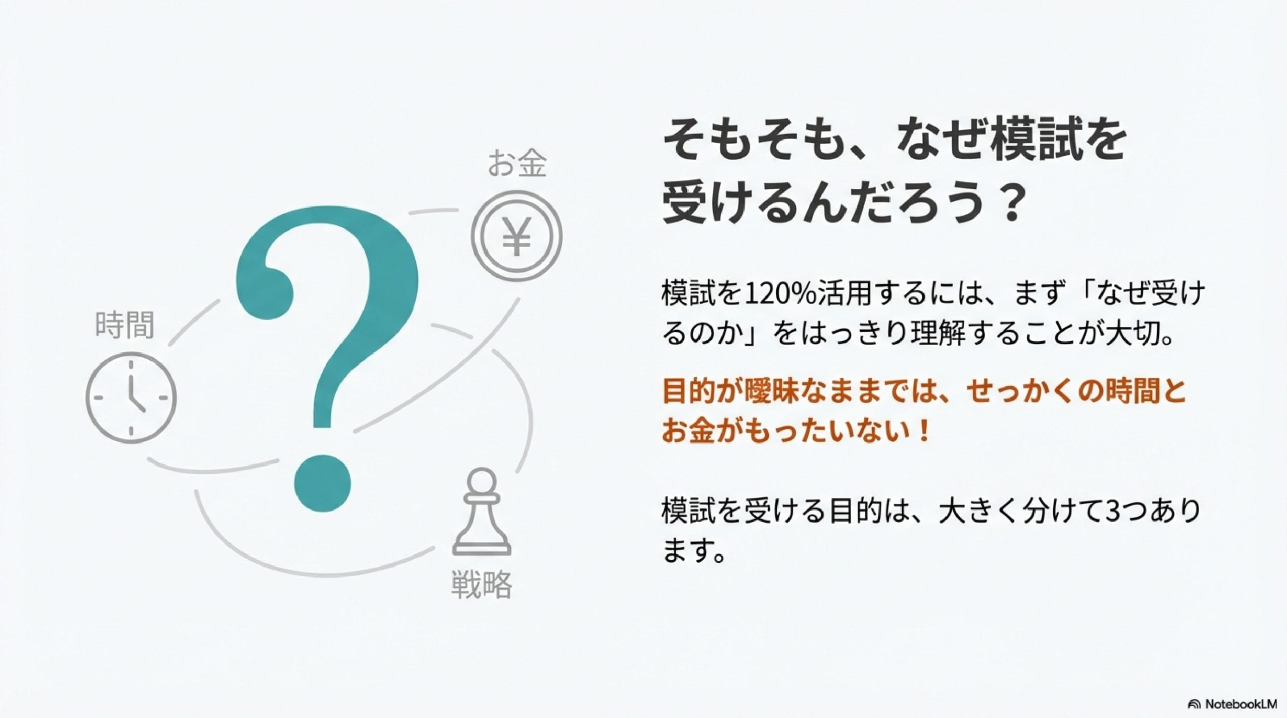 模試を120%活用するためには、そもそも「なぜ模試を受ける必要があるのか」を明確に理解する必要があります。