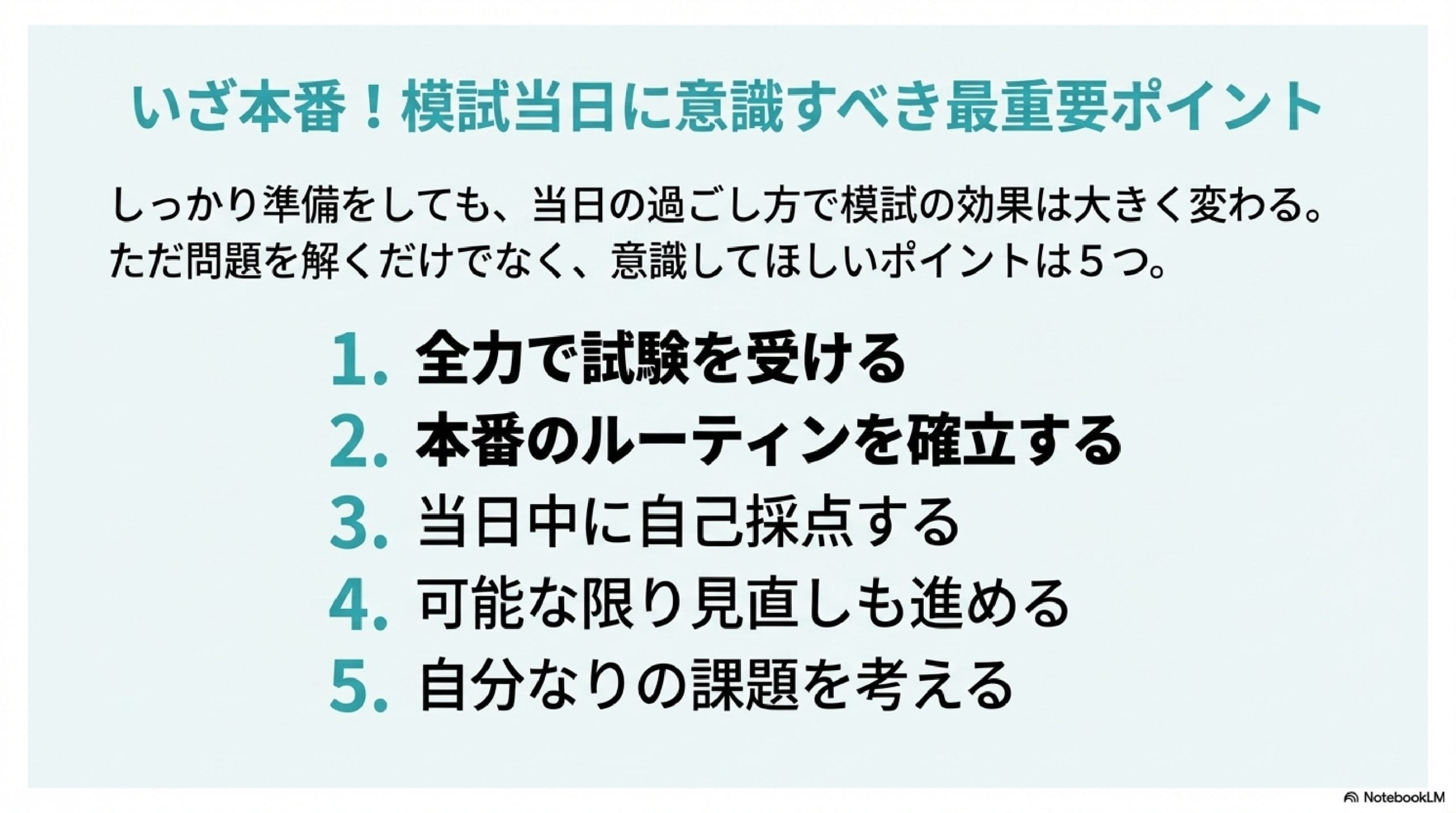 ここからは「模試当日の重要なポイント」を解説していきます。