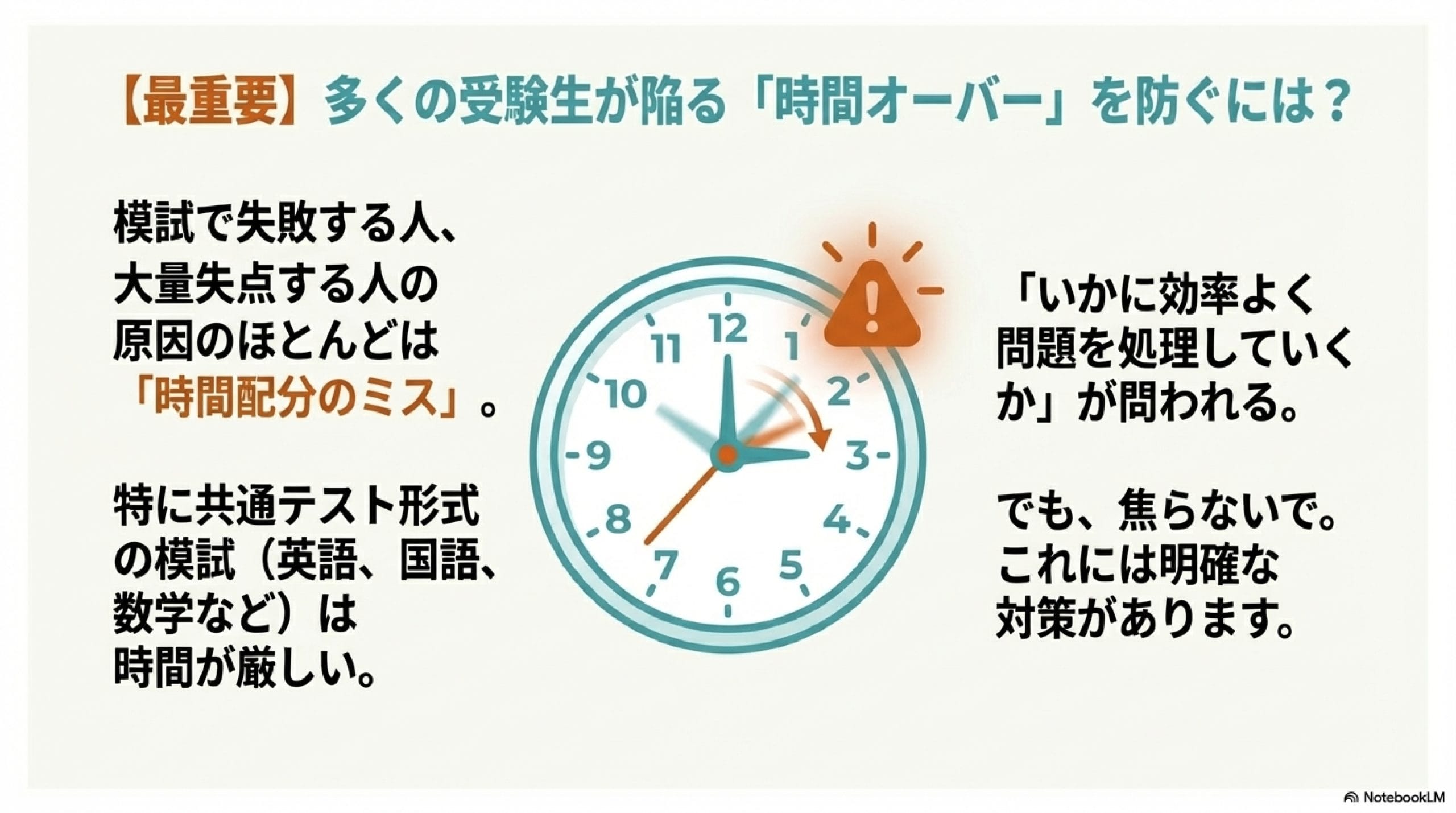 【一度は失敗する】模試で時間オーバーを防ぐ方法