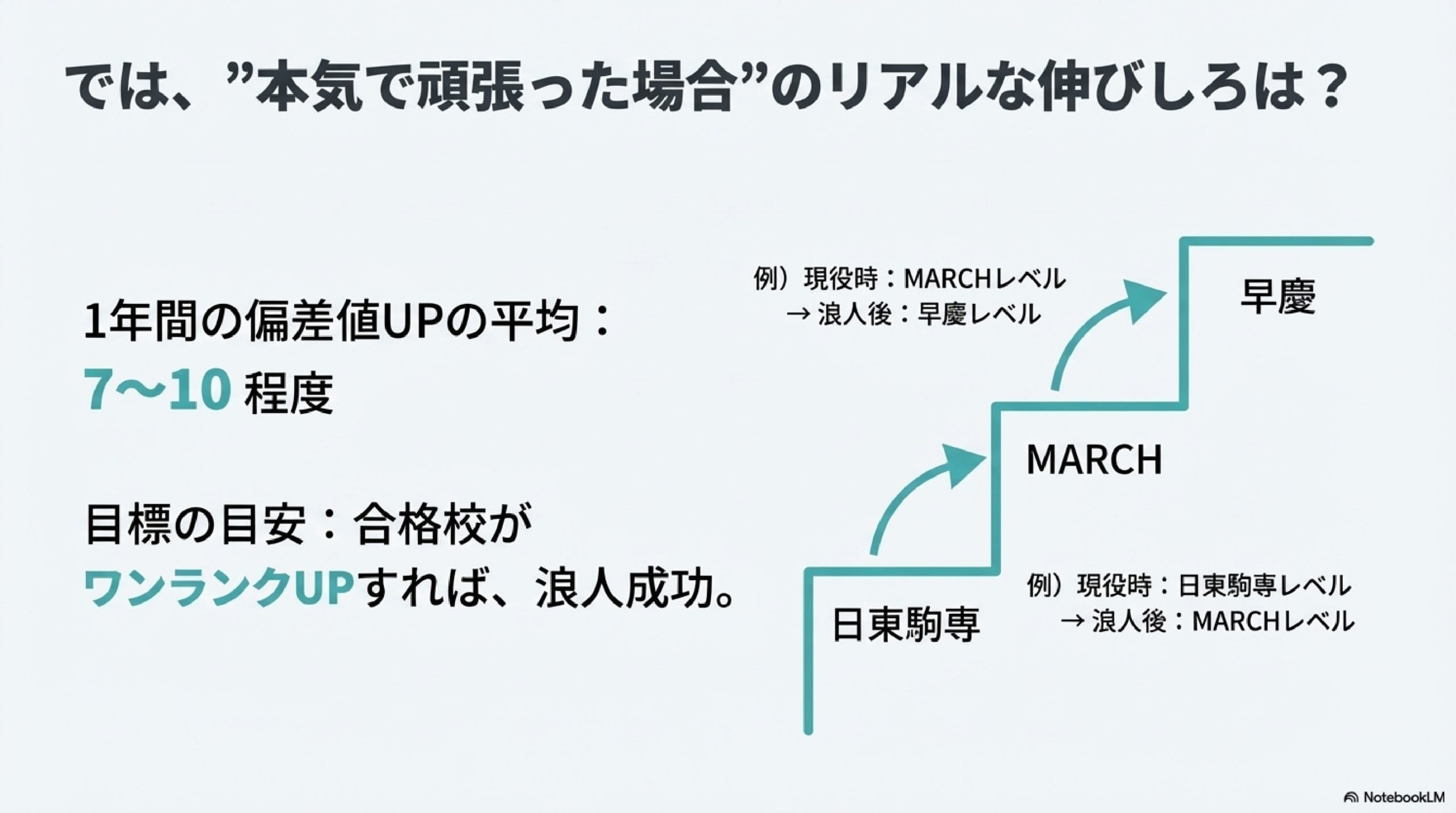 ・浪人1年間であげられる偏差値の平均は7~10程度