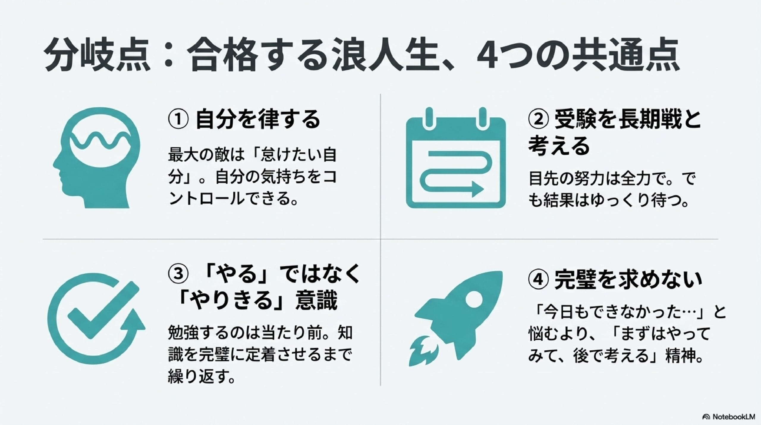 一方で合格する浪人生は以下のように考えます。