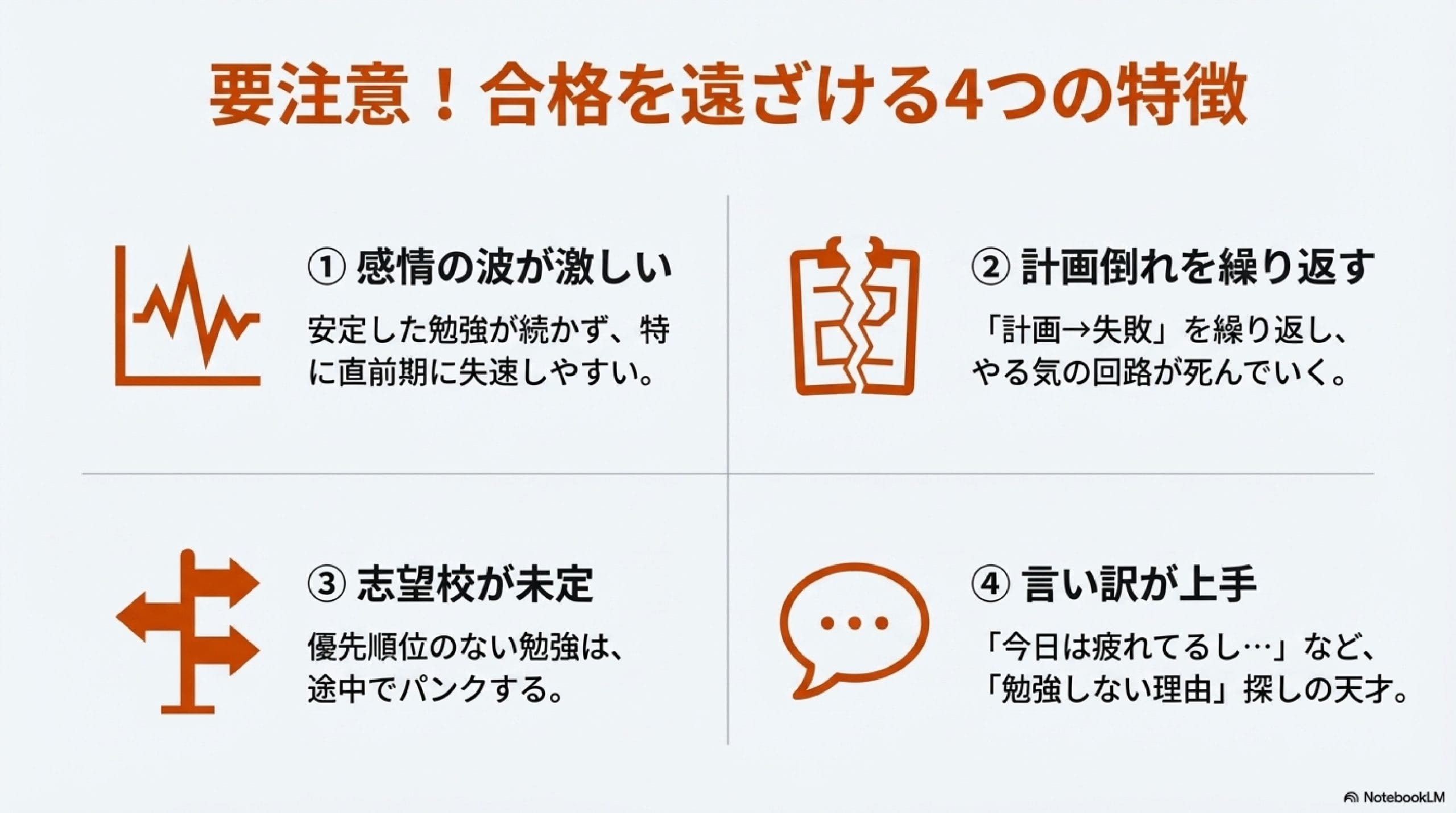 「勉強しない理由」を見つけるのが上手な人は合格できません。