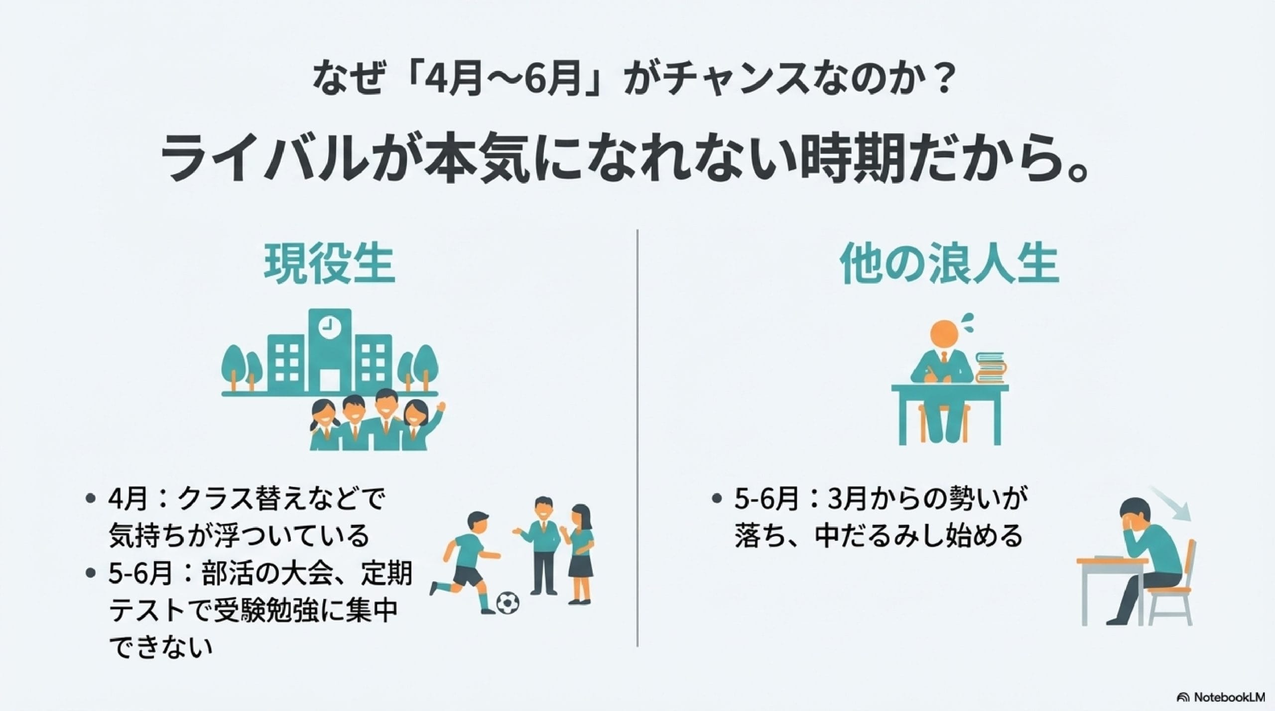 4月はクラス替えで気持ちが浮ついていたり、部活で最後の大会があって勉強に本気になりきれない