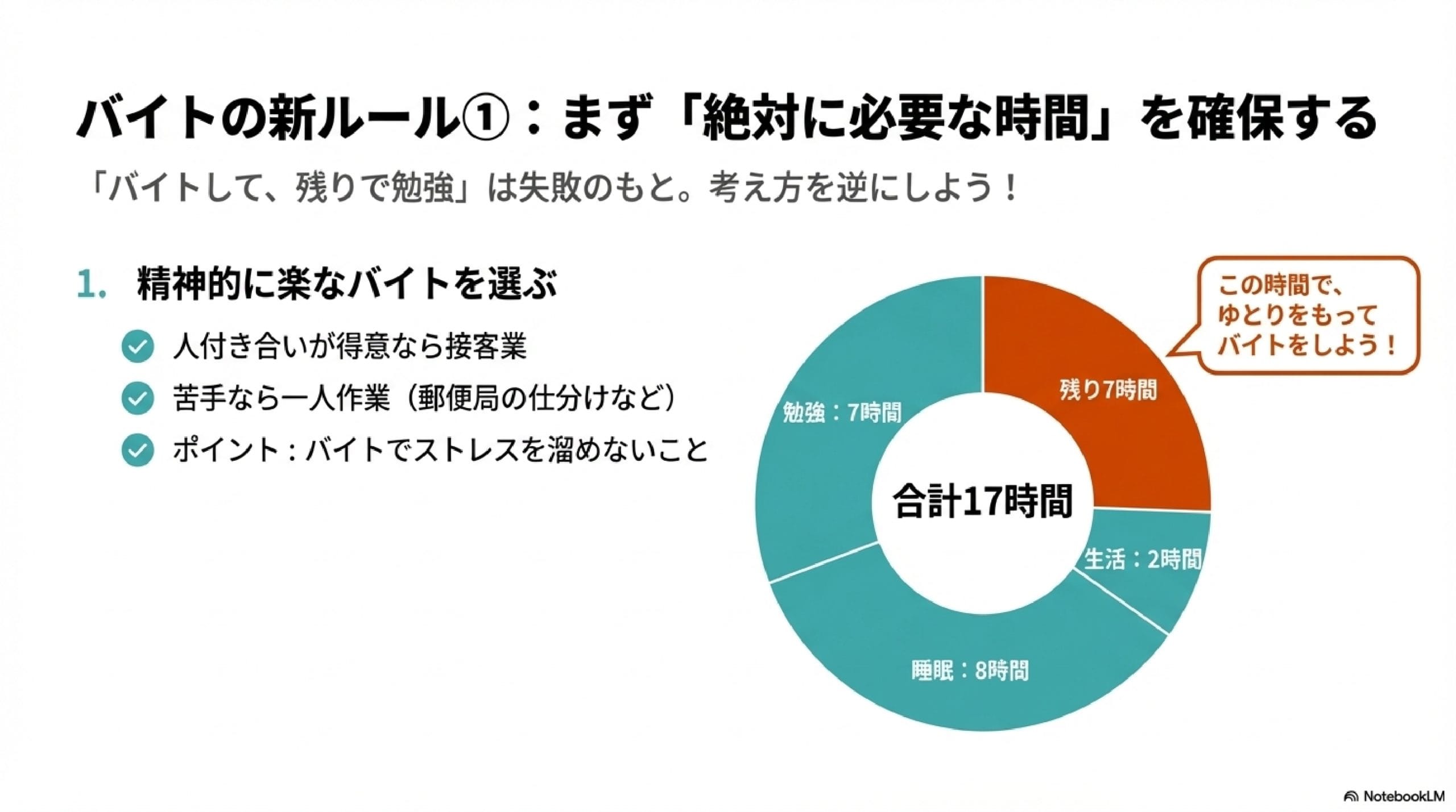 バイトをするのであれば、先に「必要な時間」を確保する必要があります。
