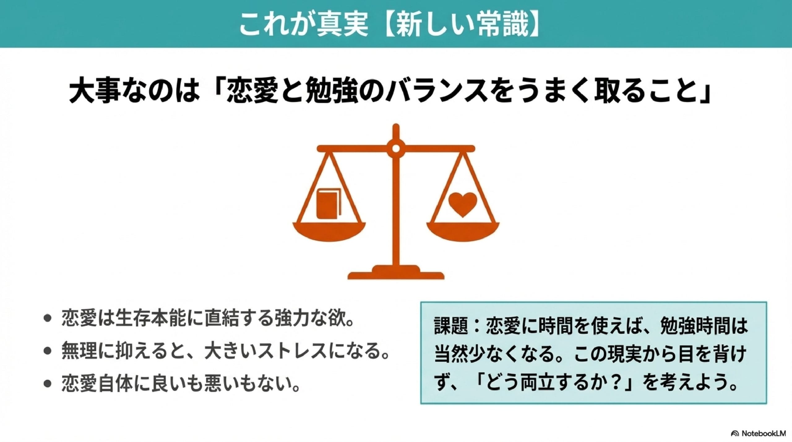 そのうえで「勉強と恋愛をどう両立するか?」を考えていきます。