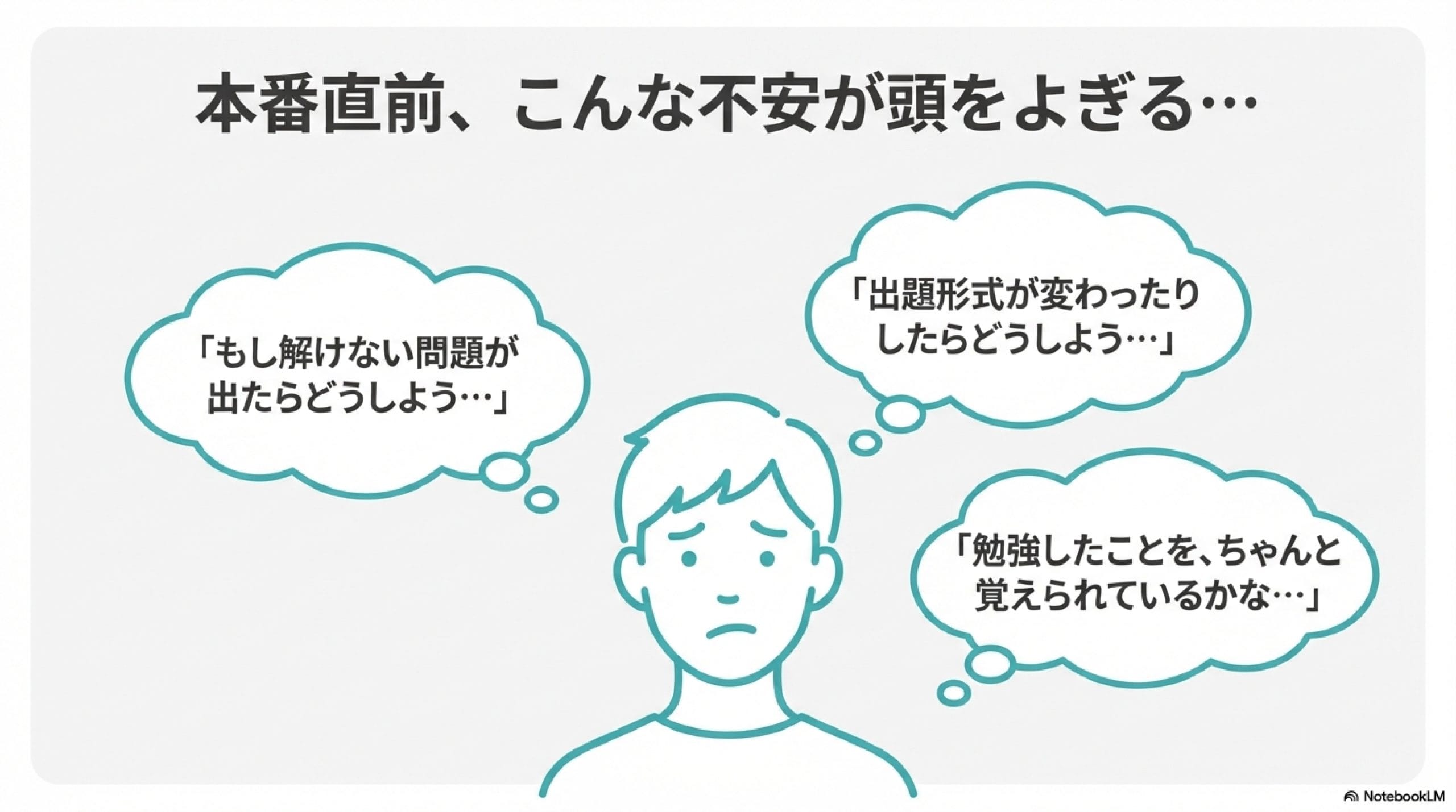 過去問演習を通じて培った冷静さは、必ず本番で活きてきます。