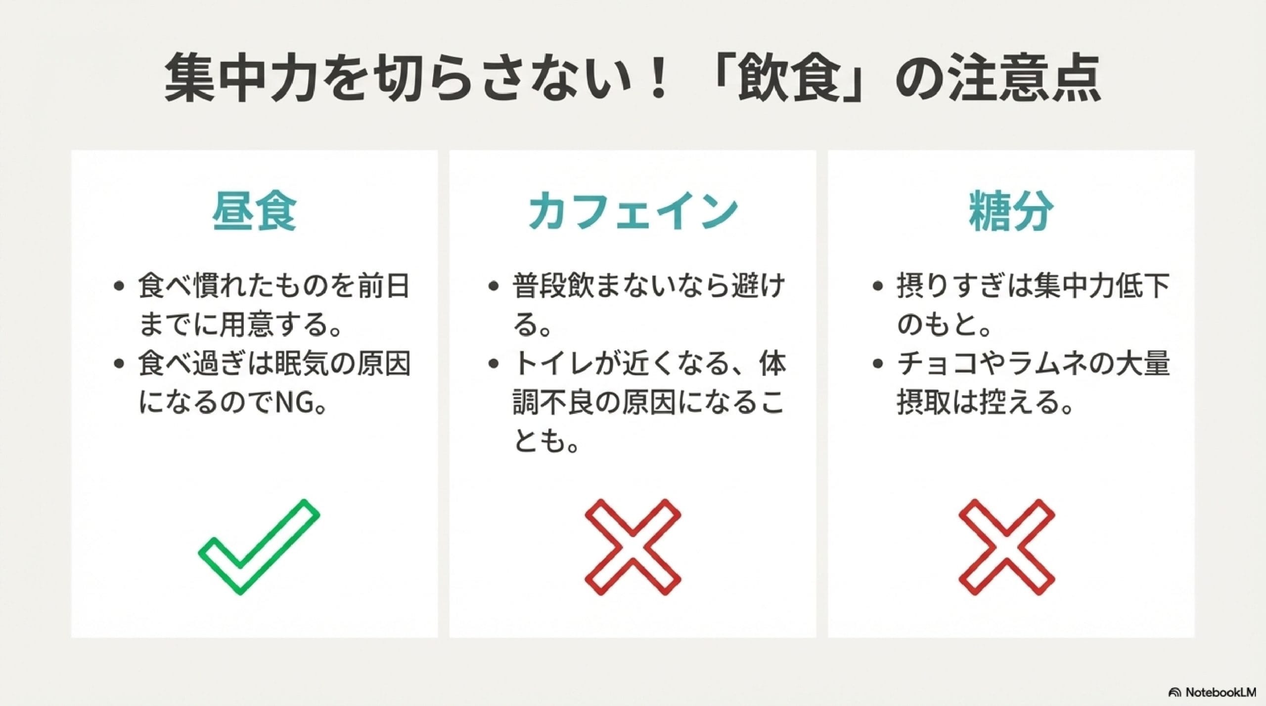 そもそも現代人は糖分を過剰摂取する傾向にあるので、試験当日に大量のラムネやチョコレート、飴を食べるのは控えておきましょう。
