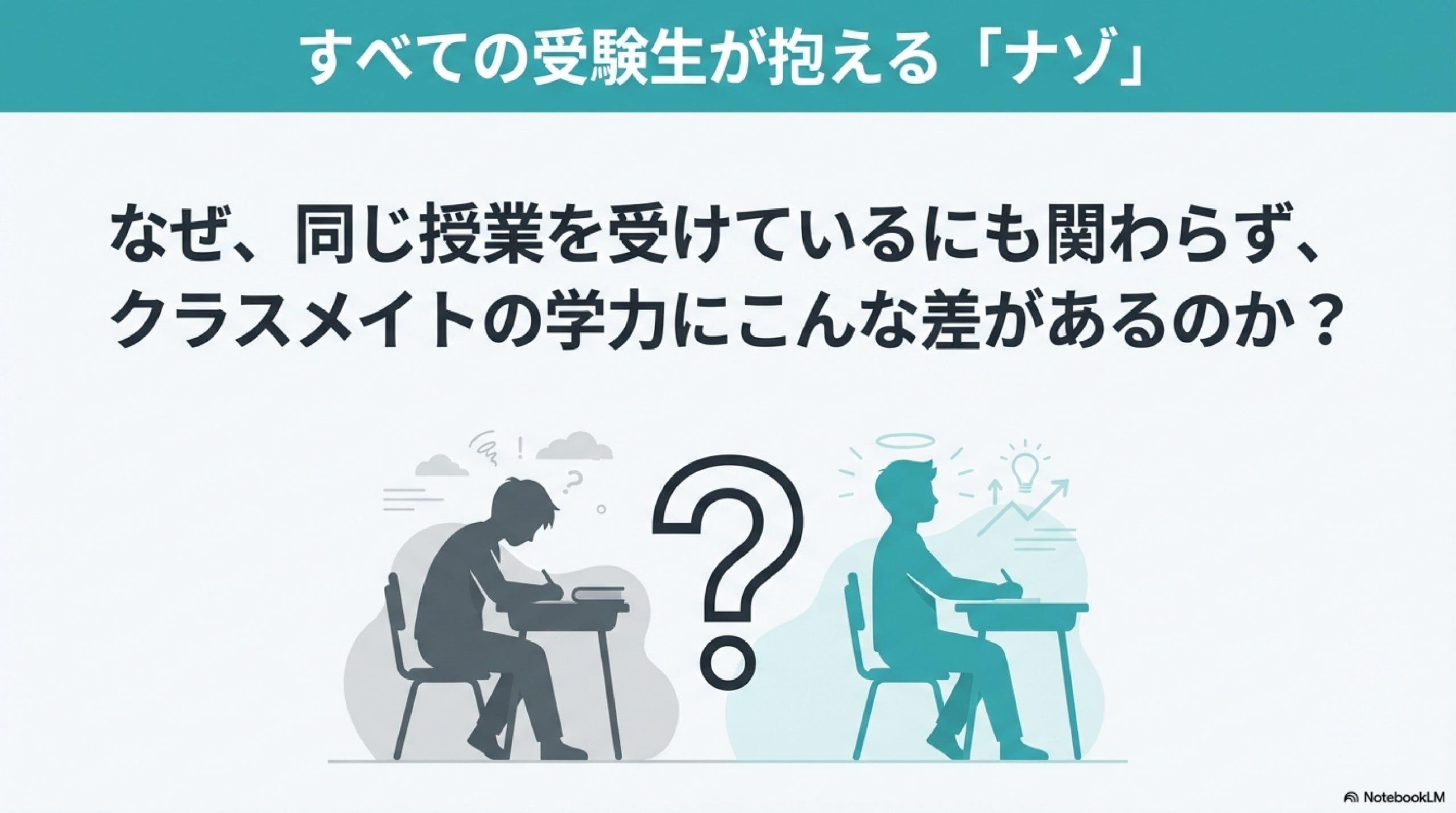このブログの中で何度か話してきたことですが、私は高校生の頃から「なぜ同じ授業を受けているにも関わらず、クラスメイトの学力にこんな差があるのか」と疑問に思っていました。
