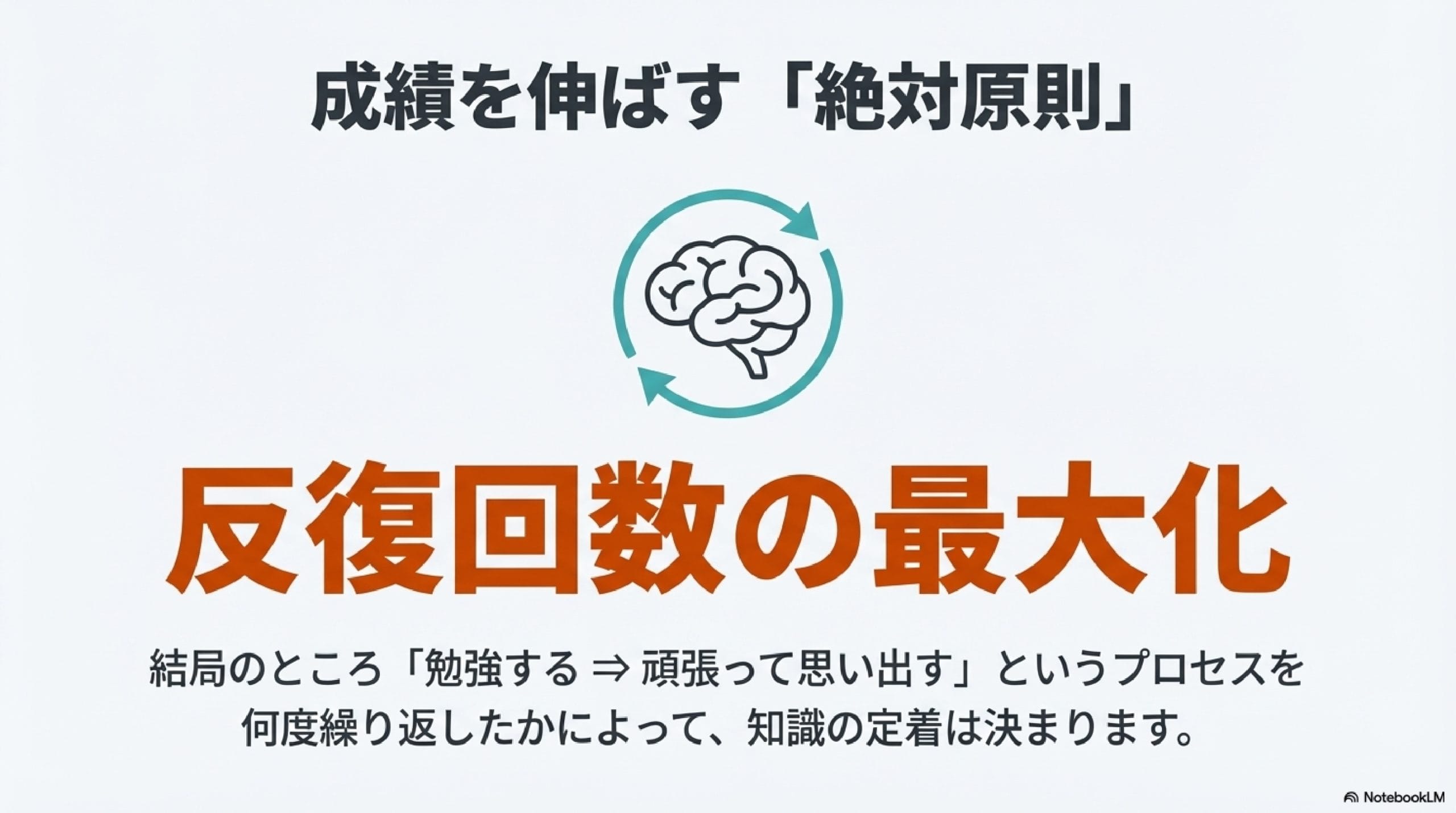 では勉強で最も重要な「思い出そうとする回数(以降、反復回数とする)の最大化」についてです。