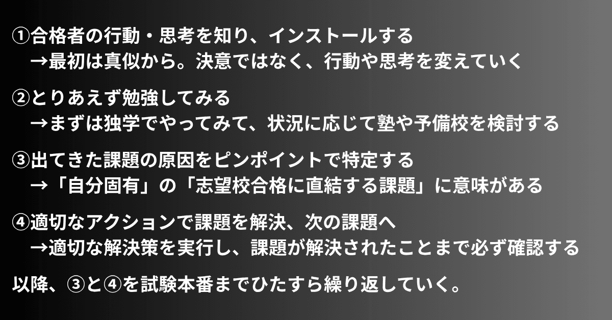②過去問研究に基づく「自分の課題」を特定し、その克服に時間を使い続けること